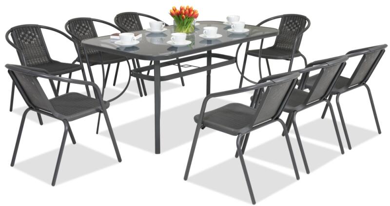 Garden Point Modena/Bergamo fém kerti bútor 8 főre antracit (GAP392-8)